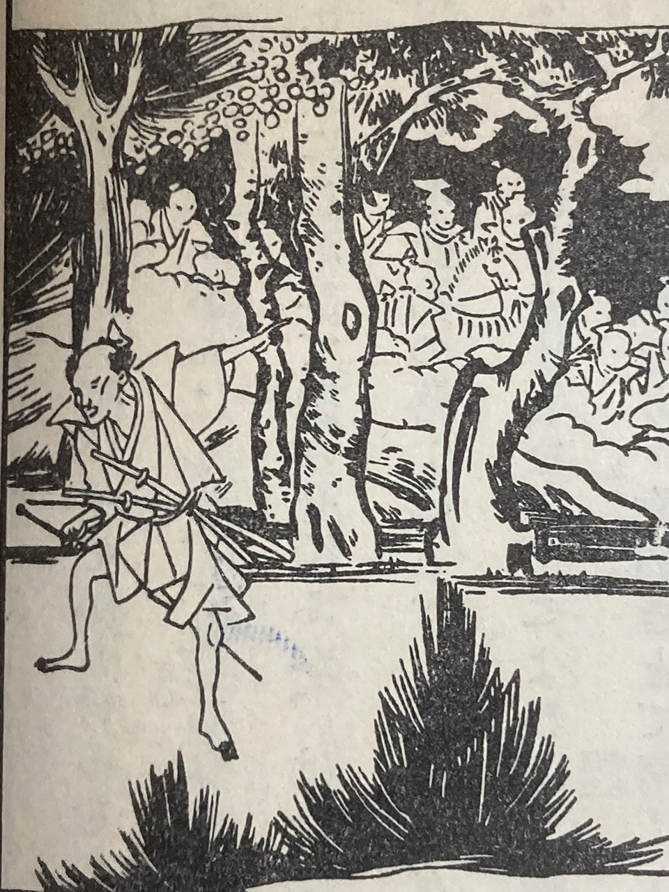 悦:なんと松坂の隣、相可の拝志(はやし)親子です。と言っても、創作ですけどね。ご存じ上田秋成『雨月物語』「仏法僧」です。一忠さんにはよい挿絵がないので、幽霊の秀次一行で我慢しておいてください。